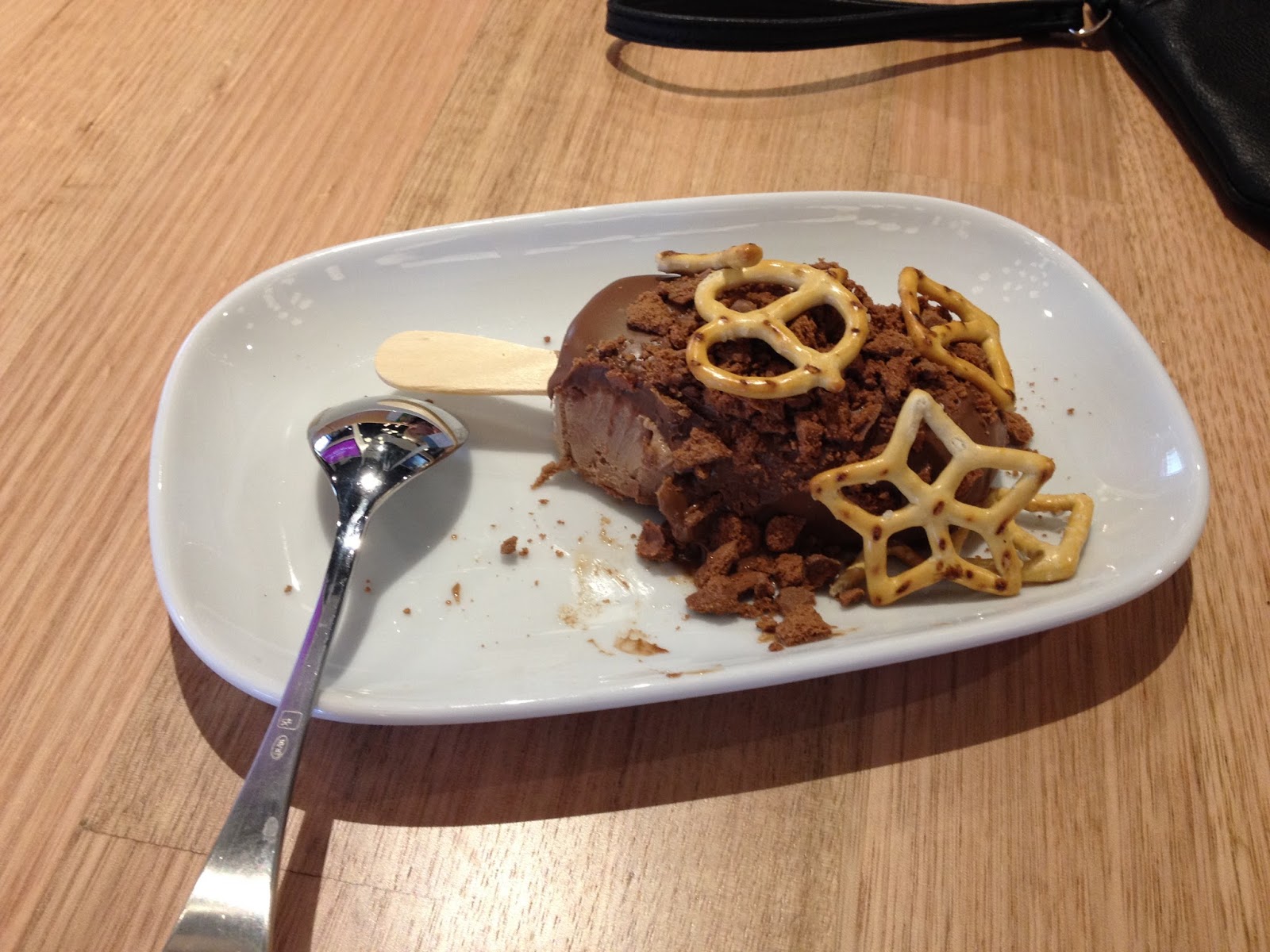 Chocolate icecream, chocolate coated, pretzels and cruched tim tams! |